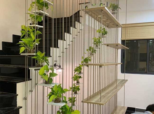 Khu vực lắp đặt lưới an toàn cầu thang có thể được kết hợp cho dây leo tạo không gian xanh sạch trong gia đình.